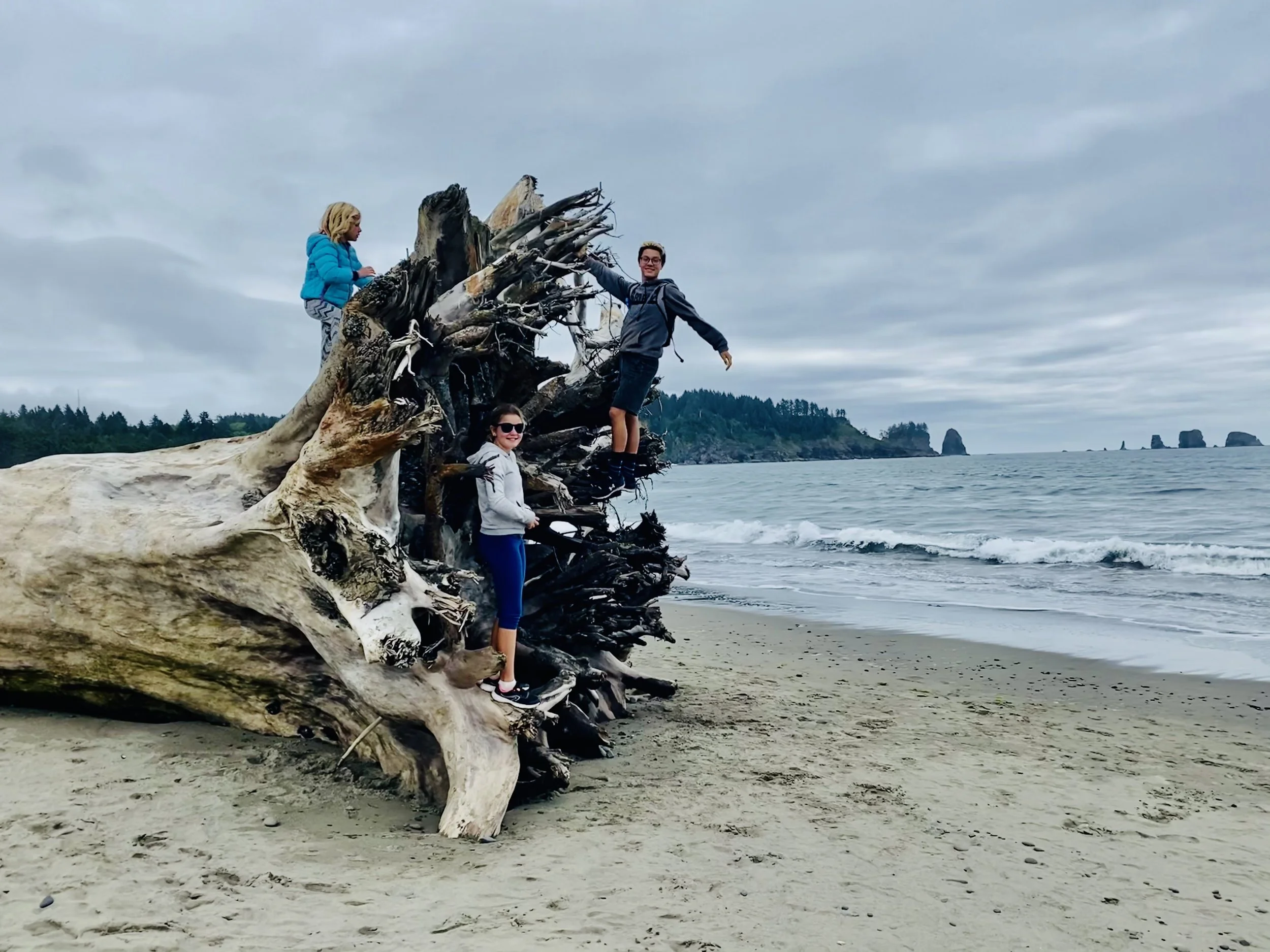 Once again we headed north and spent 3 nights at Mora Campground. A lush and quiet campground near Rialto Beach. For the next few days, we enjoyed Rialto beach, First beach, Second Beach, and Third Beach (yep, that is literally their name). Mora Campground is run by the national forest and offers activities for kids like the ranger walk, ranger talk, hiking recommendations, etc. We saw many bald eagles!!