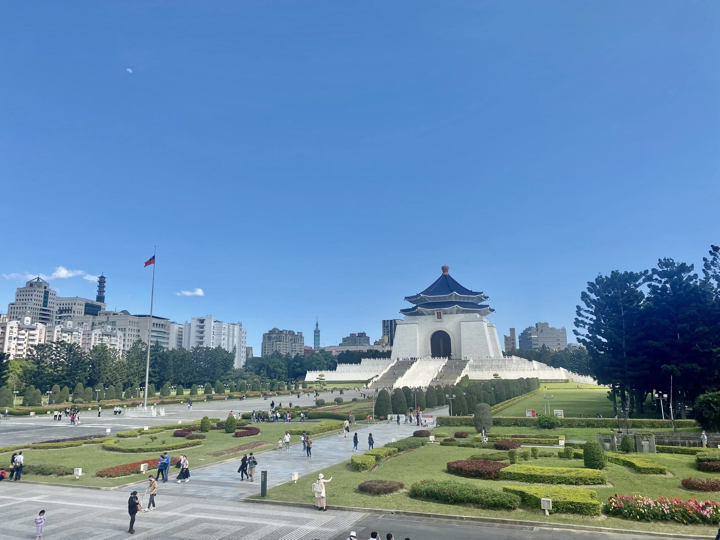 • The Chiang Kai-shek Memorial Hall is a significant landmark dedicated to the former President of the Republic of China. This imposing structure/park showcases traditional Chinese architecture and is an impressive sight. There is a massive gate at one end, very intricate, that opens to a large open space with the memorial at the far end. To either side are identical buildings, both wonders on their own. One is the National Theatre, and the other is the National Concert Hall. Inside, visitors can explore exhibitions and view the impressive bronze statue of Chiang Kai-shek. At certain hours of the day, they have a changing of the guards inside the memorial. If you can, that is the time to visit this memorial. To the sides of the main monument are the National Theater and National Concert Hall, adding to the cultural atmosphere. It serves as a center for promoting Taiwanese history and culture, making it a must-visit attraction that offers insight into Taiwan's development (underneath the memorial is a museum that showcases Taiwan’s history).