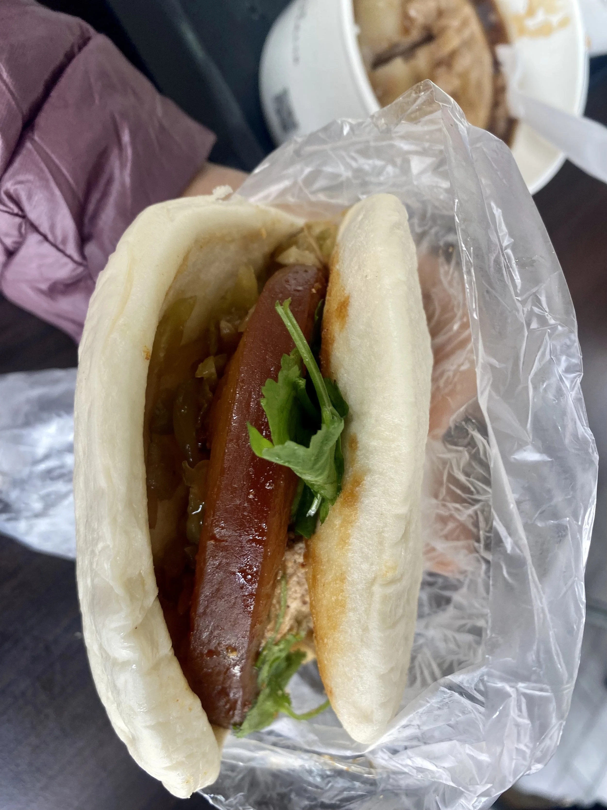 The so-called Taiwanese Burger; a steamed bun with the softest braised pork belly slice ever. One of our favourite foods in Taiwan.