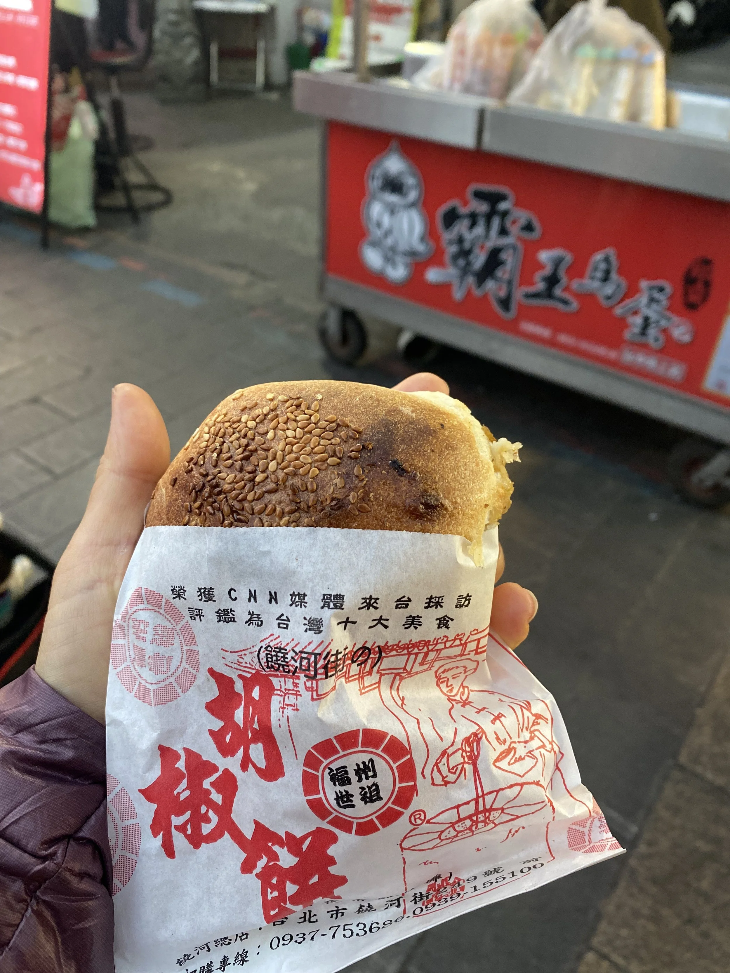 The pepper bun - crispy bread surrounding juicy pork and green onion (although they do have other fillings). Although sounding simple, it is a great snack!