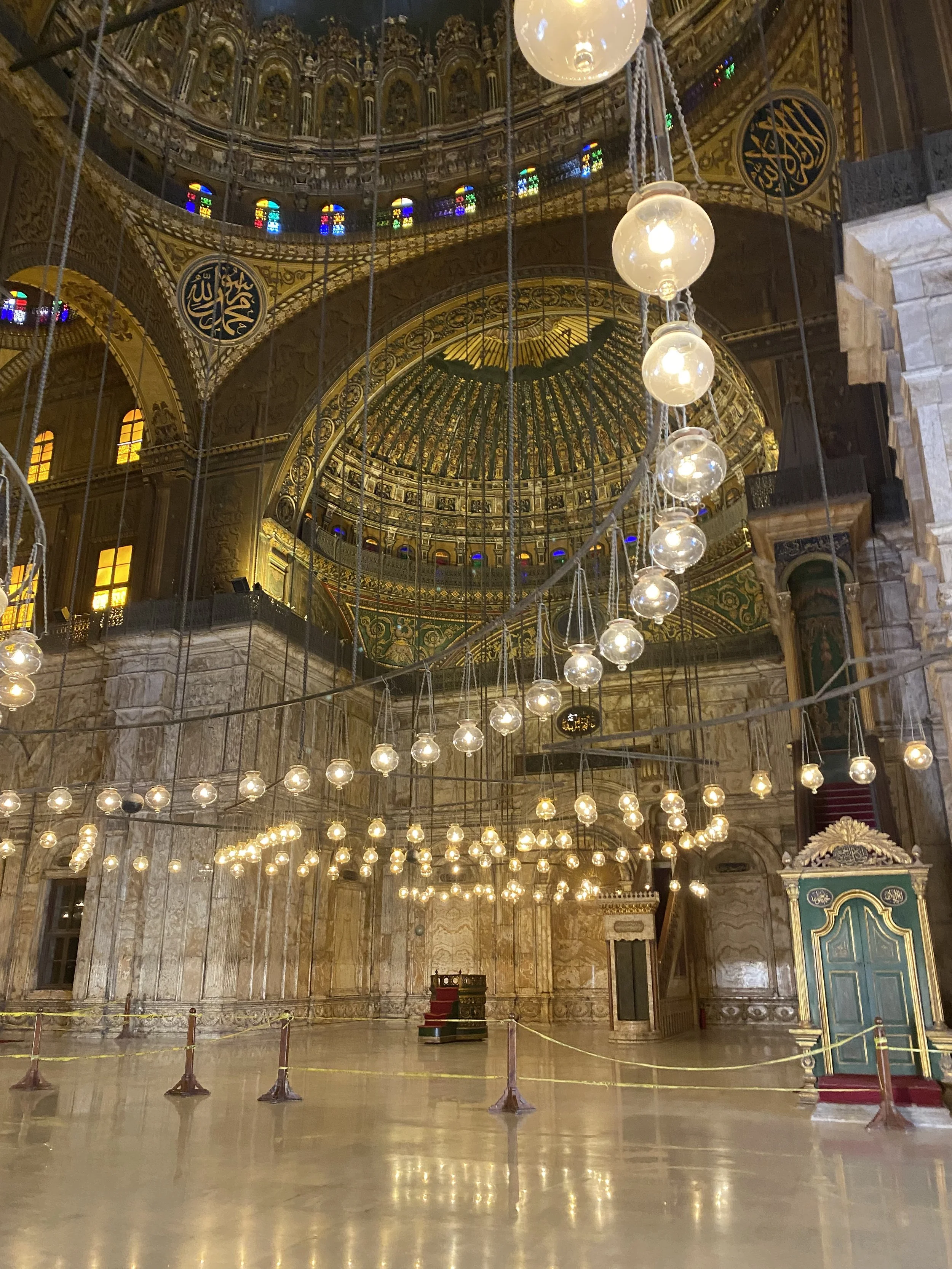 • The Citadel of Saladin: this is a large castle complex located on a hill that overlooks Cairo. Within the walls of the citadel, you'll find four large mosques, five museums, a theater, and a park. The main mosque, the Muhammed Ali Pashar Mosque or Alabaster Mosque, was inspired by the Blue Mosque in Istanbul. It had gotten our attention while driving around in Cairo. The shiny silver domes on top of a prominent hill, overtakes the skyline and are impressive. On our last day in Cairo, we decide to go explore. You pay to enter the complex and the mosque is one of the sites. The Egyptian Military Museum is also interesting (but too extensive). It offers great views from the city and on clear days, you can see the Giza Pyramids. If you have extra days in Cairo, this place is worth a visit.