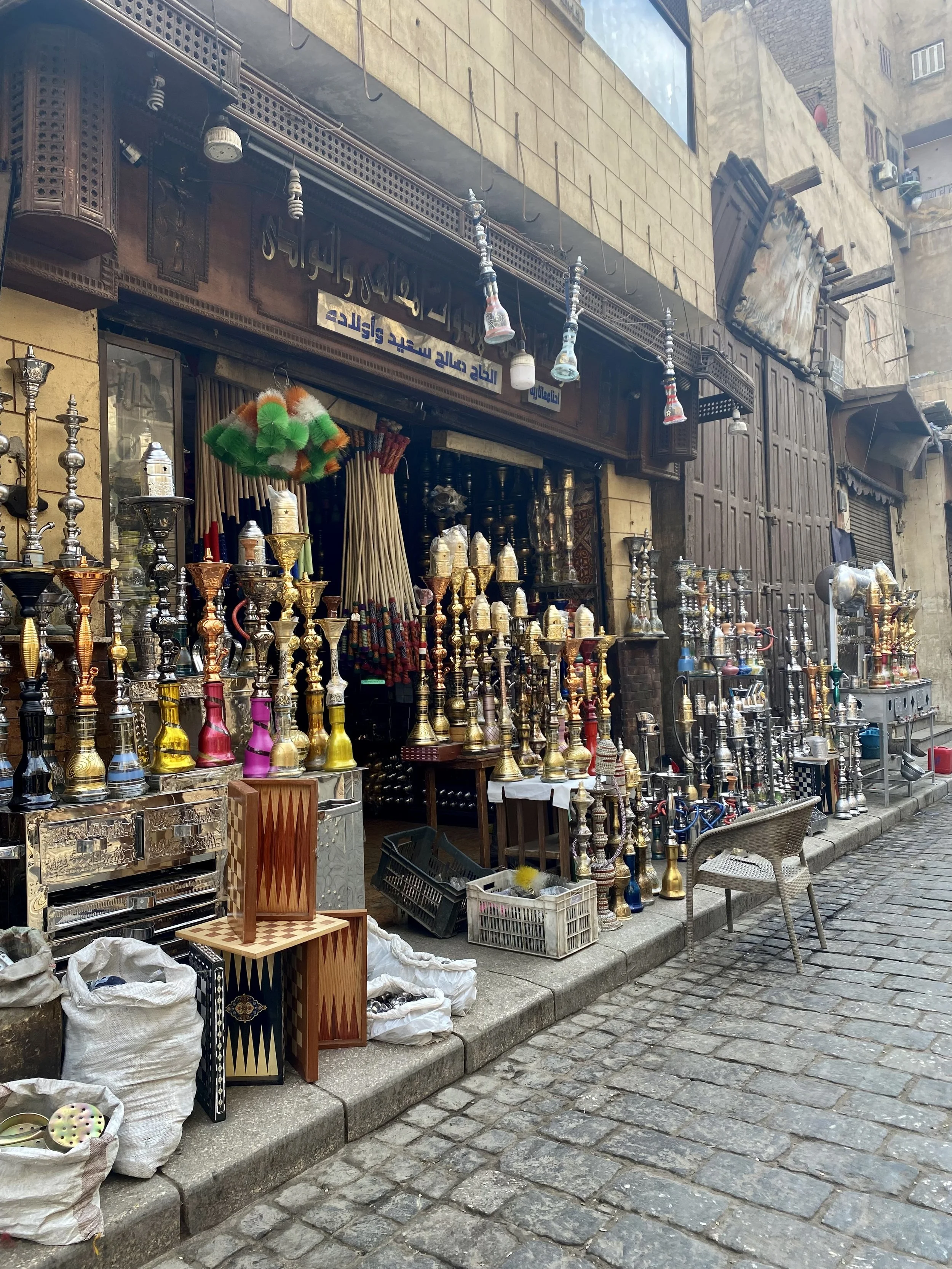• Khan el Khalil Market: This market is located inside Islamic Cairo. This is a massive market (similar to the souks in Marrakesh) where you can find everything from tacky tourist gadgets to truly unique craftsmanship pieces of wood, metal, or glass. There are many restaurants, cafes, and bakeries. Nearby is the Al Azhar mosque, a beautiful mosque and the 2nd oldest university mosque in the world! (The oldest is in Fes, Morocco). We recommend avoiding this area on Friday (we made that mistake) as it is the main prayer day for muslins, it gets VERY busy with locals and difficult to move around.