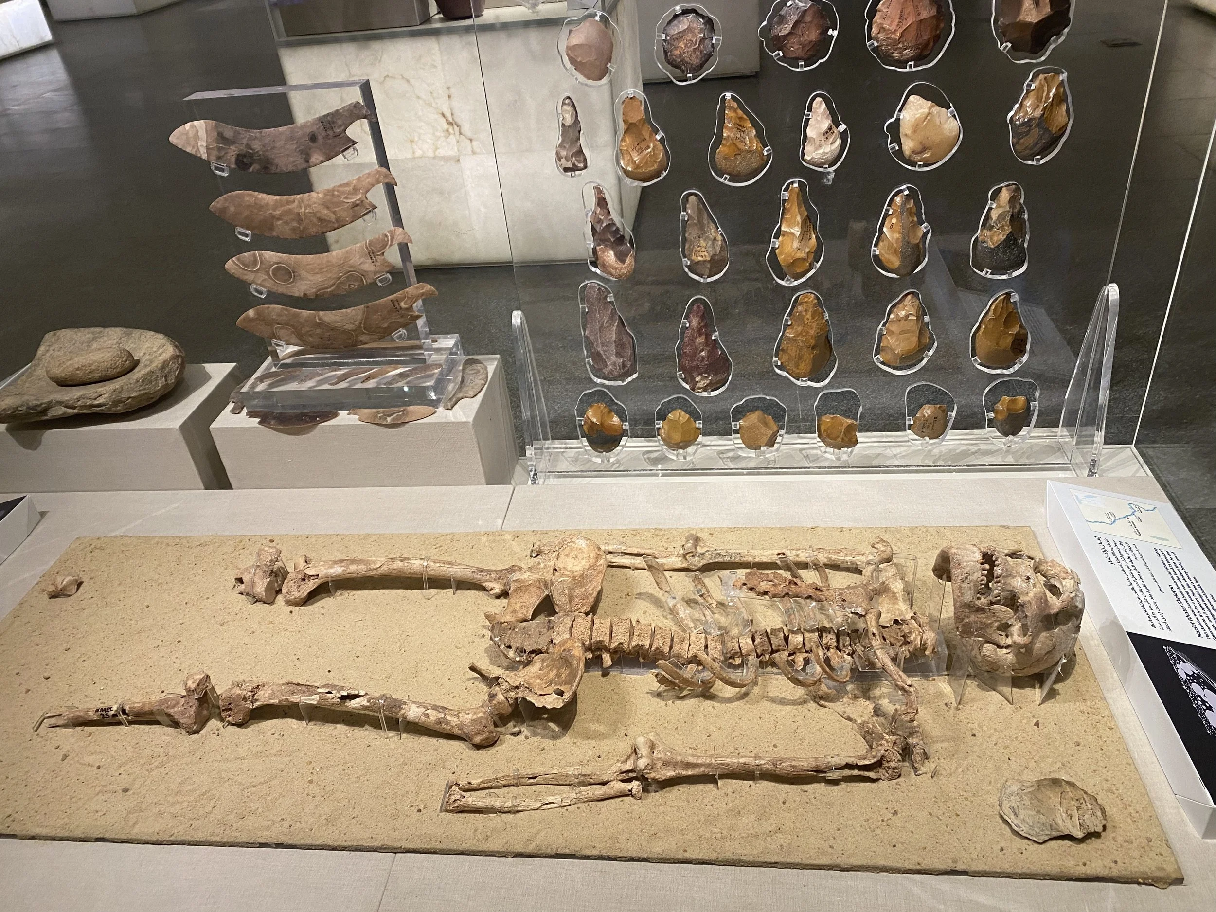 • The National Museum of Egyptian Civilization: this is a new museum and was the destination of the Royal mummy parade, widely publicized, in 2021 (more info HERE). The Royal Mummy exhibition is very well done and has interesting information about the different pharaohs and mummies. Besides this, the museum also shows the Egyptian civilization from prehistoric times to the present day. It starts with a 35,000 skeleton and goes through prehistoric, Pharaonic, Greco-Roman, Coptic, Medieval, Islamic, modern and contemporary. The chronological order of this display is beautifully done, with great signs, and very informative.